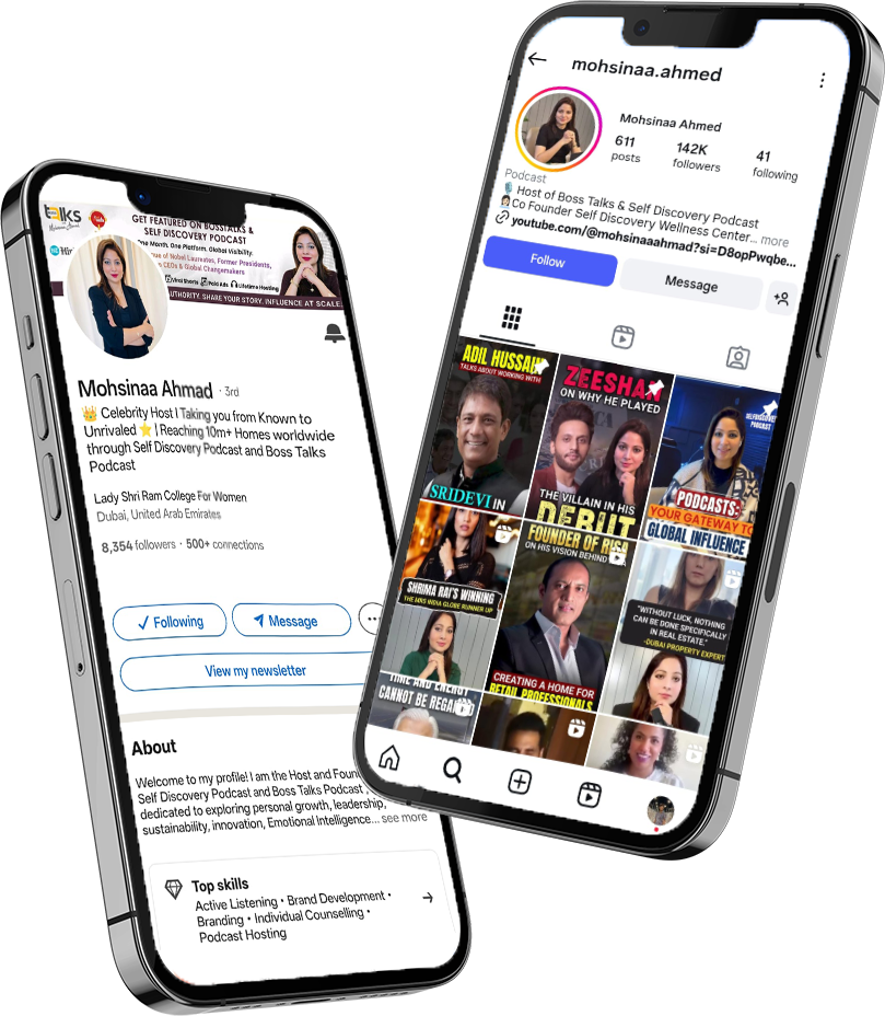 From YouTube to Instagram, we make sure your voice travels across platforms. Watch full episodes on our YouTube channel and discover engaging reels, stories, and highlights on Instagram, designed to keep your influence alive and growing.